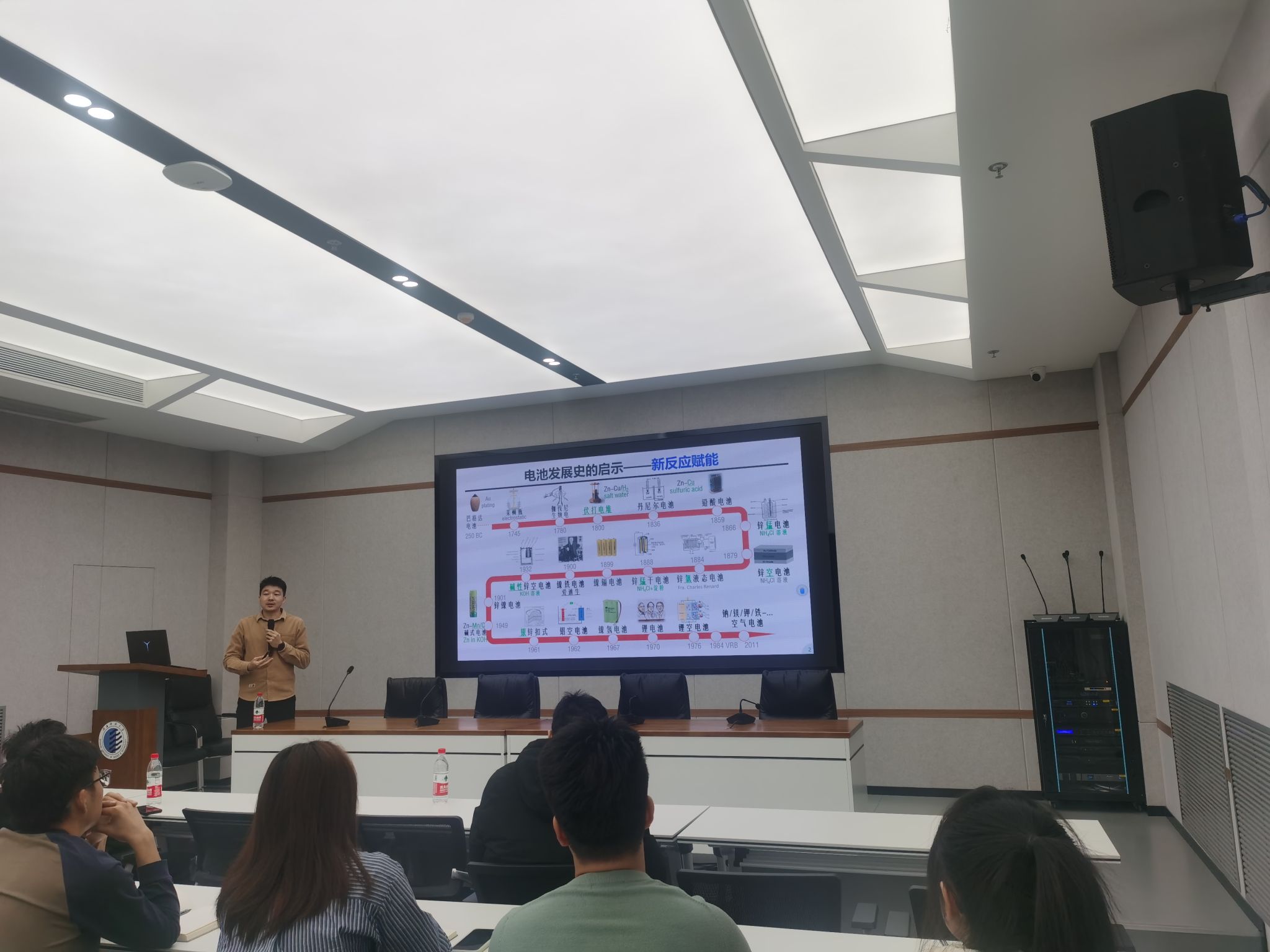 近年來手機、電動汽車、儲能電站自燃、爆炸等事故連連,電池本身的安全性受到了高度關(guān)注。另外,我國 70% 的鋰電池資源都依賴進口,開辟新賽道,保障國家能源安全的新型安全電池技術(shù)至關(guān)重要。面向國家對新一代安全電池技術(shù)的迫切需求,積極響應(yīng)總書記發(fā)展新質(zhì)生產(chǎn)力的號召,晁棟梁教授從問題導(dǎo)向,國家戰(zhàn)略及未來引領(lǐng)等角度高屋建瓴的向我院師生介紹科學(xué)研究該如何找準(zhǔn)方向切入課題,對我院師生的科學(xué)研究給予方法論上點撥,并介紹了所帶領(lǐng)的eAB團隊致力于發(fā)展具有本征安全、低成本特性的新型水系電池。跳出現(xiàn)有電池體系及方案,該報告將從水系電池面臨的瓶頸——能量密度(<50 Wh/kg)出發(fā),以電化學(xué)反應(yīng)的基本單元——氧化還原反應(yīng)電對的精細調(diào)節(jié)為核心,以設(shè)計制備穩(wěn)定可逆的多電子轉(zhuǎn)化反應(yīng)為手段,構(gòu)筑新型水系電池體系,最終為高比能水系電池(>100 Wh/kg)的設(shè)計提供系統(tǒng)的器件化解決方案。報告后,晁棟梁教授對材料學(xué)院的青年教師國家自然基金申報中存在問題進行了詳細指導(dǎo)。