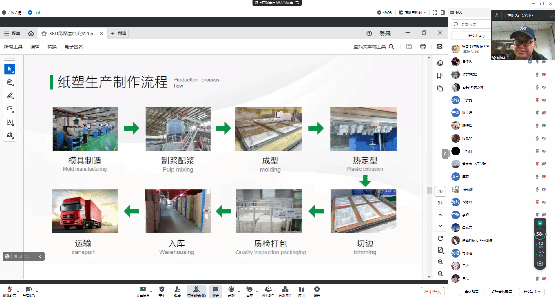 杜建軍董事長圍繞“紙塑包裝制品”的設(shè)計(jì)及工藝制造主題,結(jié)合自己的求學(xué)經(jīng)歷、工作經(jīng)歷以及創(chuàng)業(yè)經(jīng)歷等,介紹自己及企業(yè)在紙塑包裝制品方面的產(chǎn)品開發(fā)及市場推廣的相關(guān)經(jīng)驗(yàn)。他詳細(xì)講解了企業(yè)在紙漿模塑濕壓、精品干壓、干壓工藝及本色、白色、灰色、A4白等紙塑產(chǎn)品的開發(fā)。最后,杜建軍從紙塑包裝制品的開發(fā)設(shè)計(jì)、模具加工、紙塑生產(chǎn)等方面,介紹紙塑包裝制品生產(chǎn)中的全線工藝流程,進(jìn)一步加深了師生對(duì)紙塑包裝制品生產(chǎn)過程的認(rèn)知。