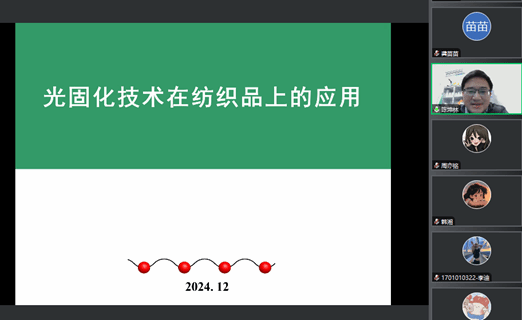 12月20日,應輕工科學與工程學院(柔性電子學院)和研究生院邀請,江南大學智能紡織新材料研究國家重點實驗室陳坤林副教授做客我校“未央導師論壇”,作了題為“光固化技術(shù)在紡織品上的應用”的學術(shù)報告,輕工學院相關(guān)教師、研究生及本科生參加了本次報告會。