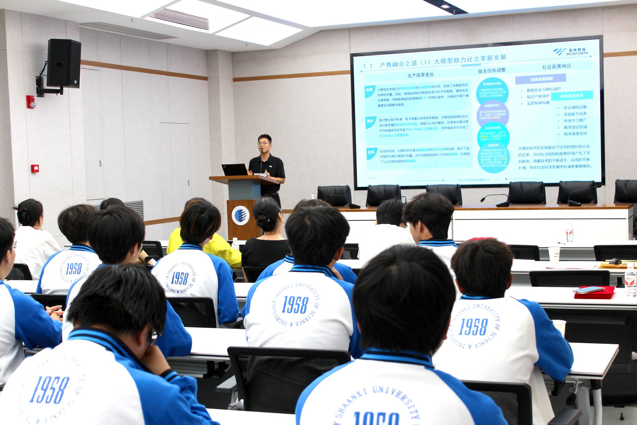 為深入貫徹落實國家數(shù)字經(jīng)濟發(fā)展戰(zhàn)略需求、全面提升教師與學(xué)生的數(shù)字技術(shù)應(yīng)用能力,落實學(xué)校七屆四次雙代會關(guān)于深化產(chǎn)教融合、科教融匯的部署,促進(jìn)信息技術(shù)與教育教學(xué)的深度融合,應(yīng)校教務(wù)處、經(jīng)濟與管理學(xué)院邀請,5月23日下午在至誠至博會議室,美林?jǐn)?shù)據(jù)技術(shù)股份有限公司數(shù)智研究院副院長郭田奇做客我校“教育教學(xué)論壇”,作題為“駕馭人工智能是人才培養(yǎng)的時代命題”的講座。會議由院長助理邢戰(zhàn)雷主持,學(xué)院相關(guān)教師和數(shù)字經(jīng)濟專業(yè)全體本科生參加。