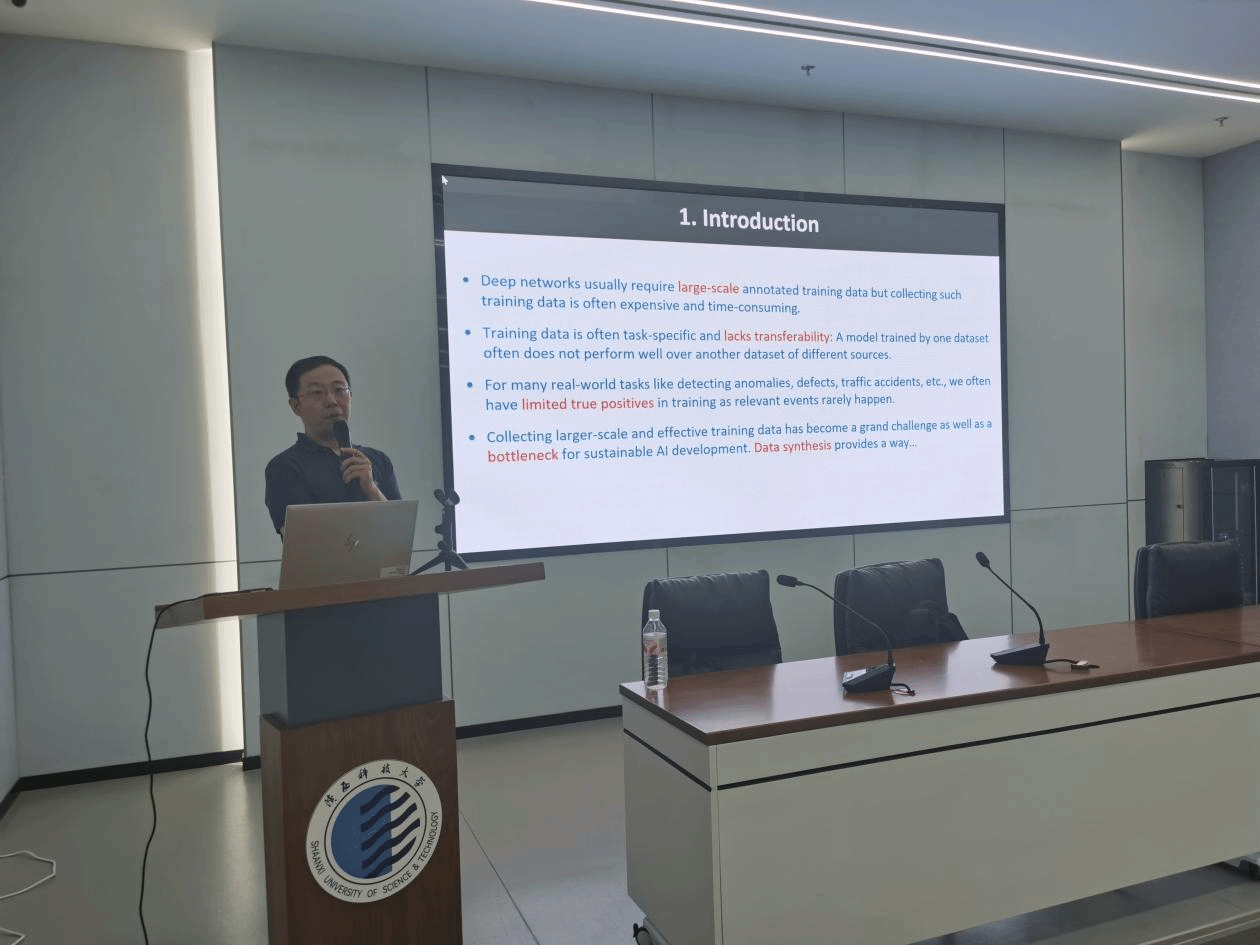 6月17日上午,受電氣與控制工程學(xué)院邀請(qǐng),南洋理工大學(xué)呂士健博士做客陜西科技大學(xué)“前沿科學(xué)報(bào)告”。作了題為“Sustainable AI via Image Generation and Cross-Domain Transfer”的學(xué)術(shù)報(bào)告。會(huì)議由電控學(xué)院副院長周強(qiáng)主持,相關(guān)師生80余人參加了此次報(bào)告會(huì)。