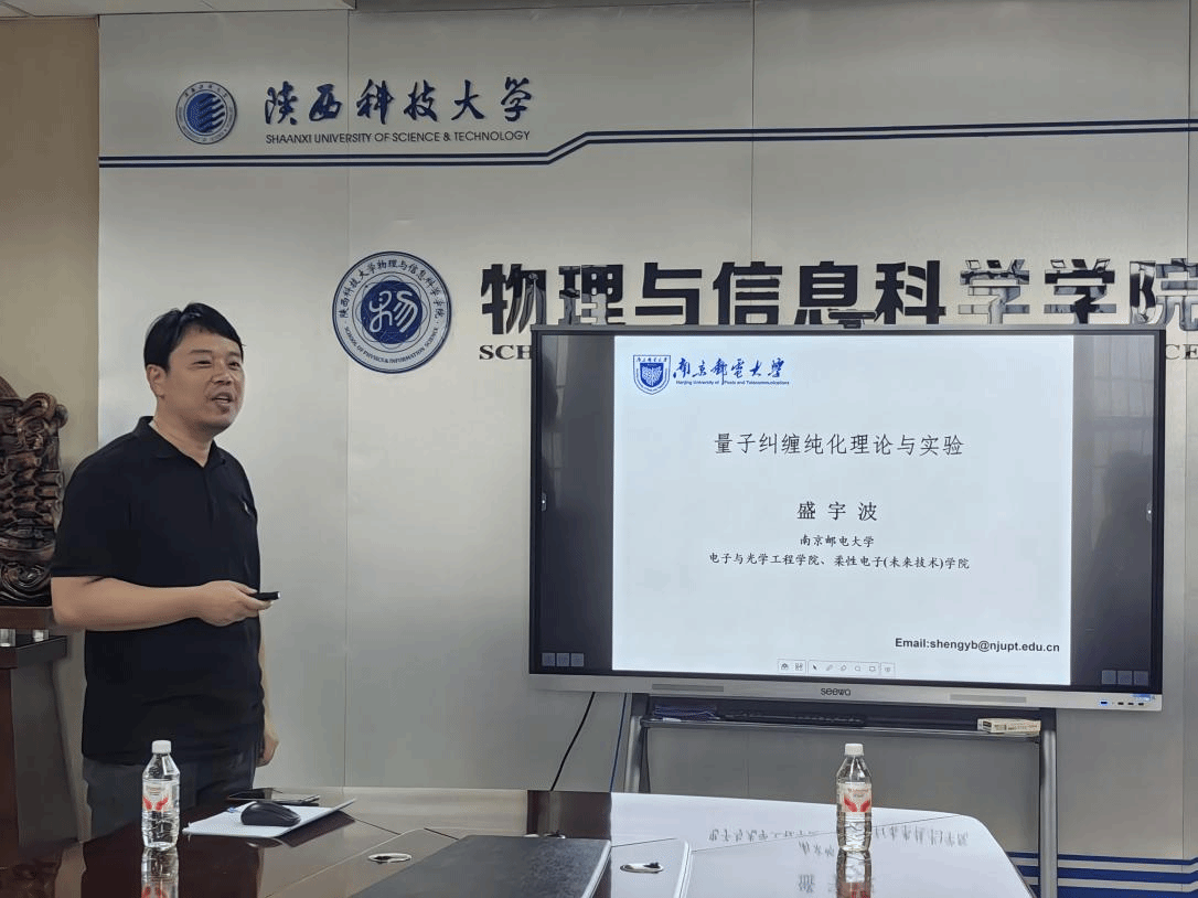 7月7日上午,應(yīng)物理學(xué)院、科技處及前沿院邀請,南京郵電大學(xué)盛宇波教授做客我?!扒把乜茖W(xué)報告”,在理科樓441做題為“量子糾纏純化理論與實驗進(jìn)展”的學(xué)術(shù)報告。報告會由物理學(xué)院院長劉建科主持,相關(guān)專業(yè)教師、研究生參加報告會。