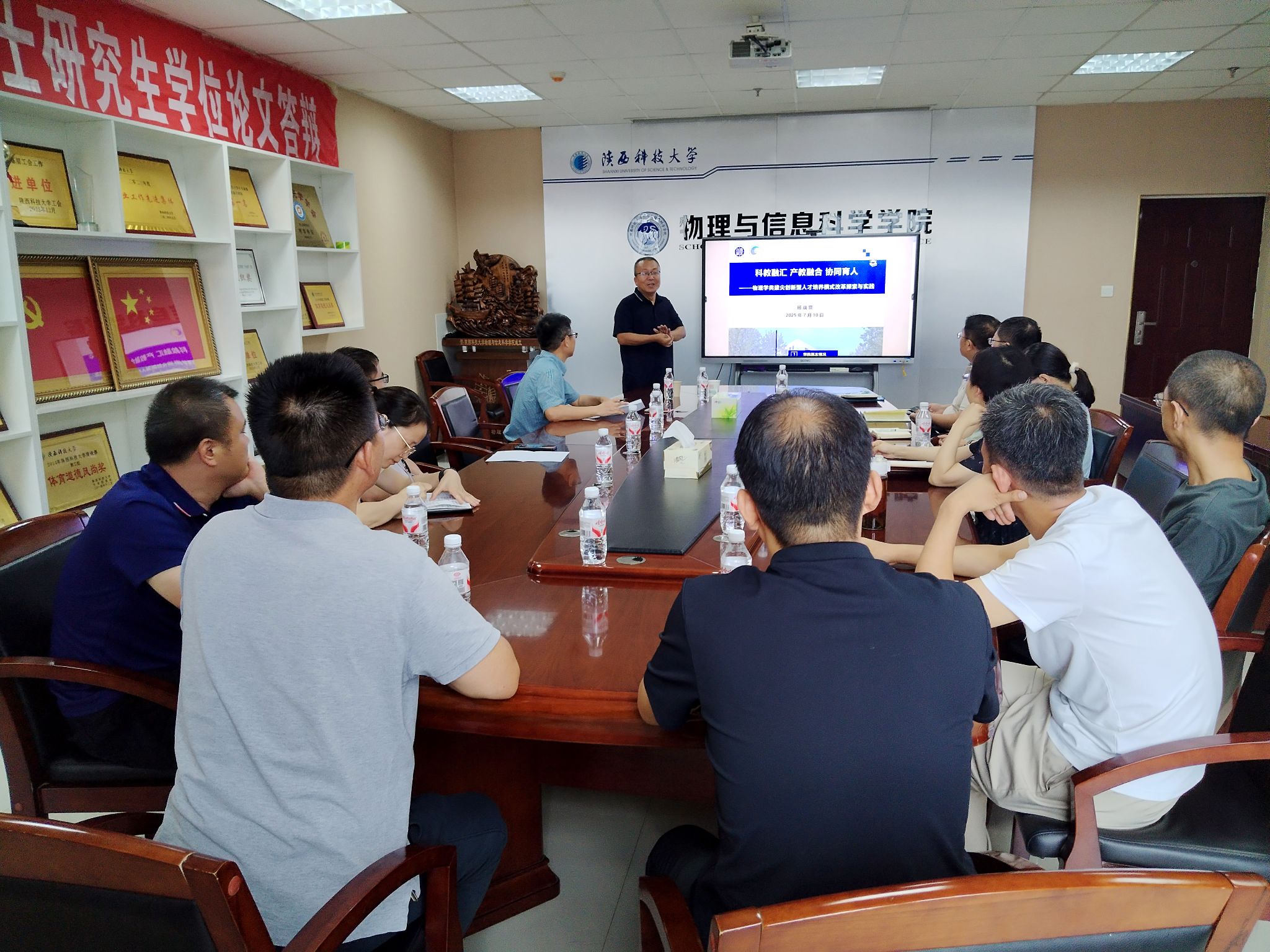7月10日,應(yīng)教務(wù)處、物理與信息科學(xué)學(xué)院邀請,在理科樓441會議室,西北大學(xué)楊戰(zhàn)營教授做客我校“教育教學(xué)論壇”,作題為“科教融匯 產(chǎn)教融合 協(xié)同育人--物理學(xué)類拔尖創(chuàng)新型人才培養(yǎng)模式改革探索與實踐”的專題報告。會議由副院長羅道斌主持,學(xué)院教學(xué)督導(dǎo),各系(中心)主任、副主任,教師代表,教學(xué)秘書等參加。
